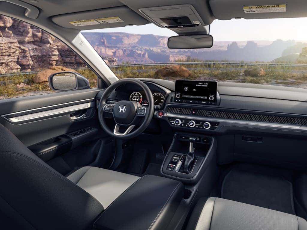 Interior style is thoughtfully matched to each trim level, giving the CR-V a refined yet functional appeal. The LX and Sport Hybrid trims come with black cloth upholstery, while the EX trim adds the option of gray cloth.